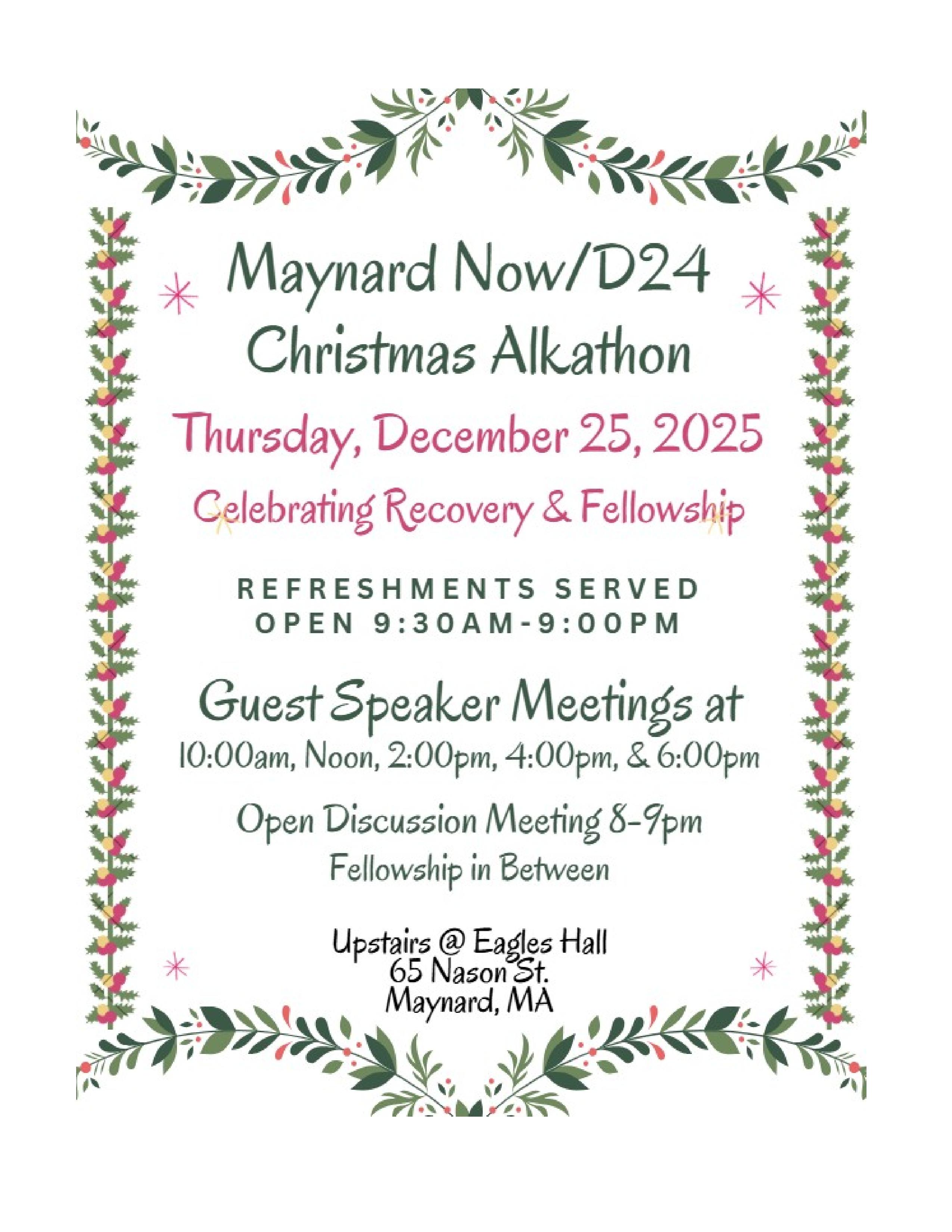 9:30A - 9P Xmas Alcathon Alcathon meetings at 10,