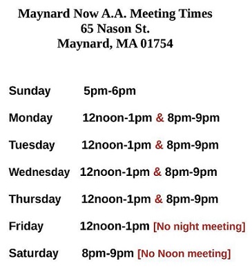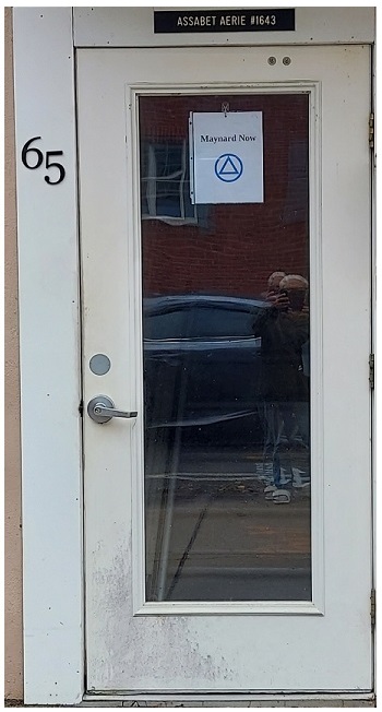 The Maynard Now group meets upstairs at the Eagles hall at the corner of Nason and Summer streets. The entry door is on Nason street.