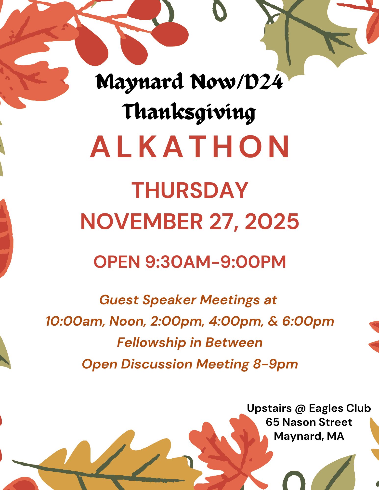 Thanksgiving Alcathon hosted by District 24 and the Maynard Now group.